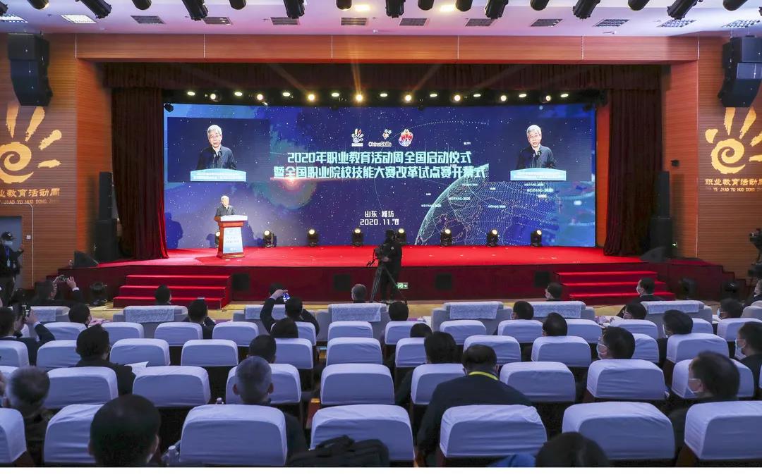 11月8日,2020年职业教育活动周全国启动仪式暨全国职业院校技能大赛改革试点赛开幕式在山东省潍坊市举行。教育部党组书记、部长陈宝生出席活动并讲话,山东省委书记、省人大常委会主任刘家义出席。